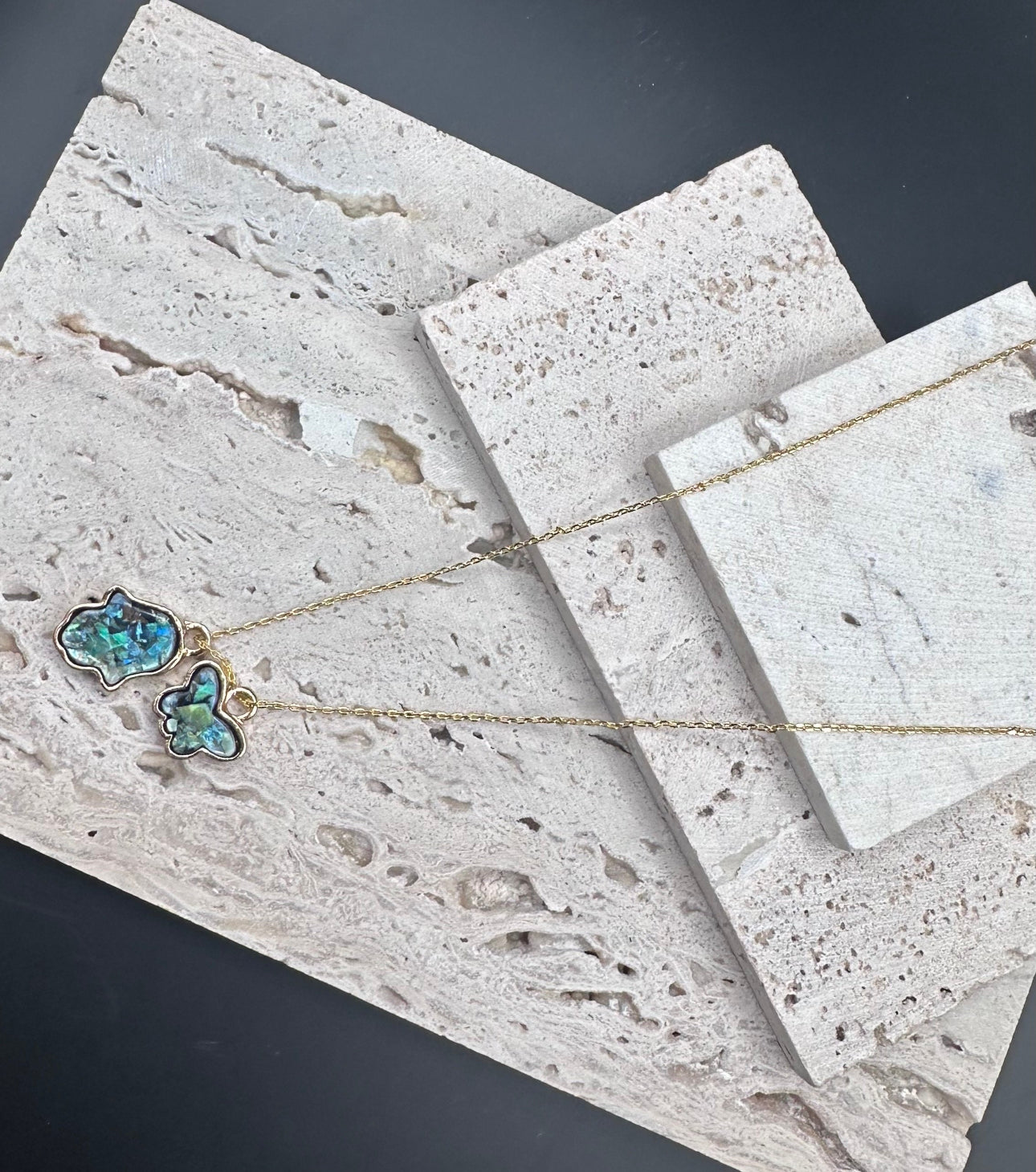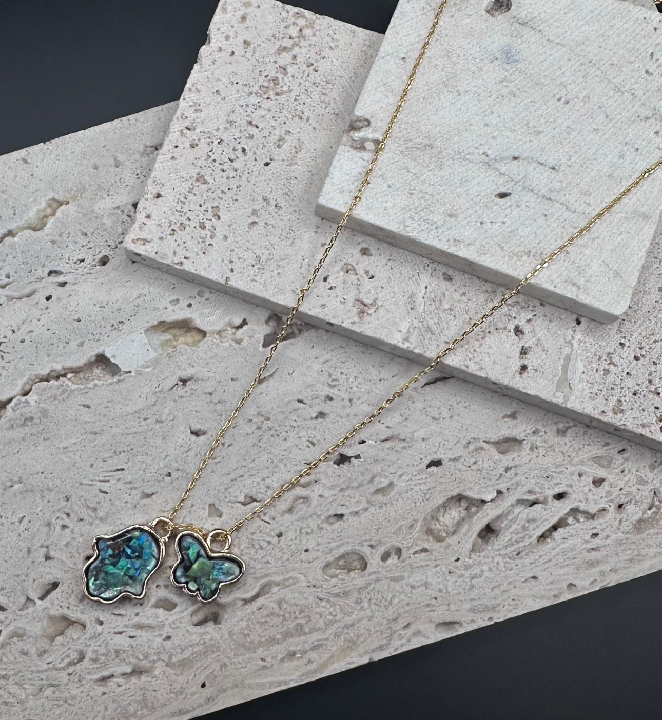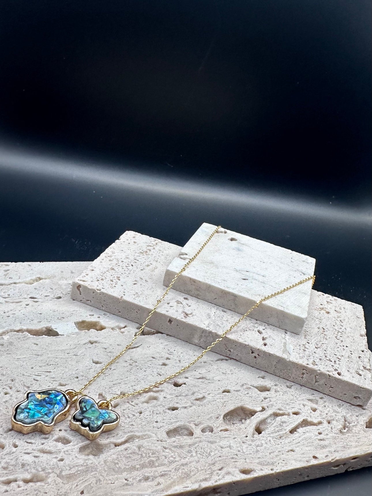 Gold Hamsa and Gold Butterfly Necklace , length adjustable chain
