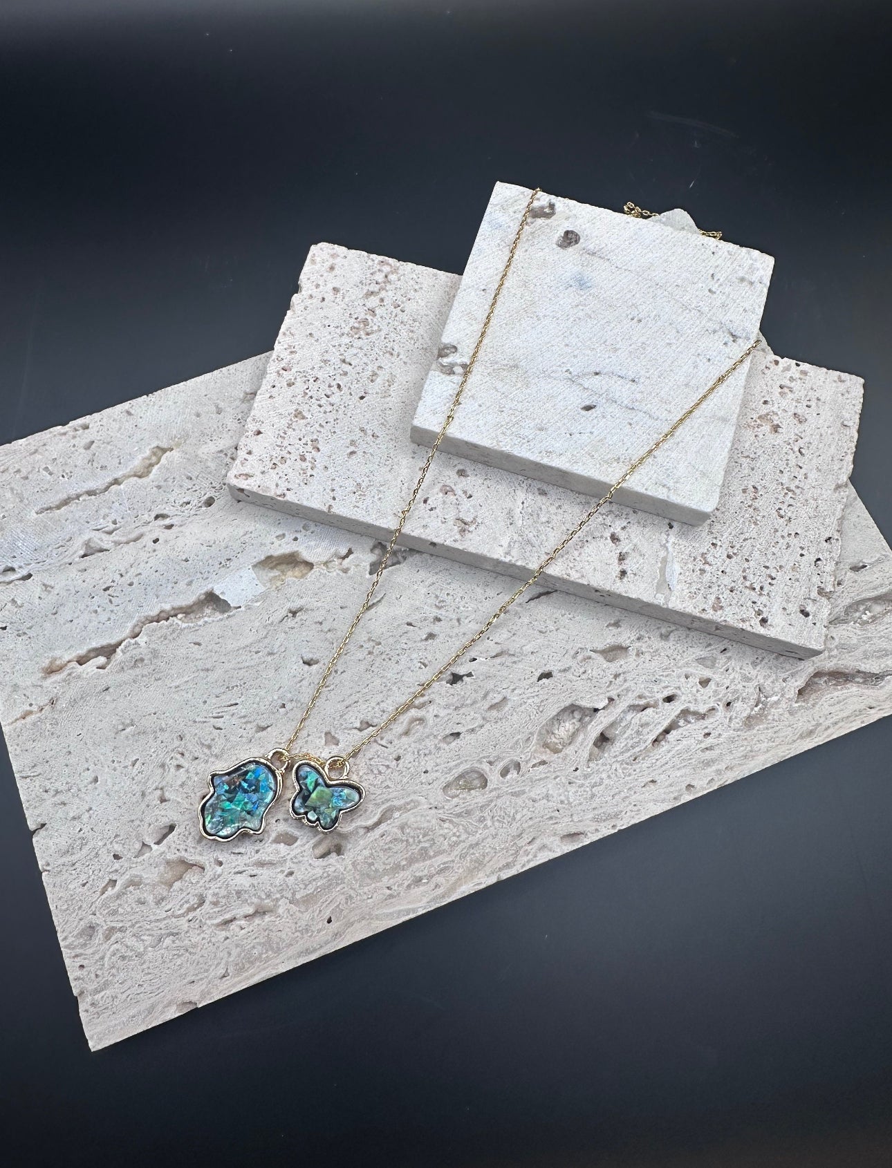 Custom Made - Gold Hamsa and Gold Butterfly Necklace , length adjustable chain